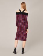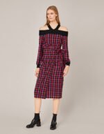 Neon grid pattern. modern and fashionable colors. full of artistic feelingOff-shoulder design. showing a graceful clavicle curveMARYLING stitching. the knit texture is soft and skin-friendly. and the plain weave is light and smoothHigh waist and straight skirt. good proportions. elegant and fashionable