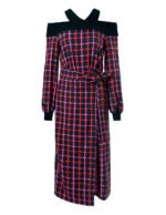 This glamour checked dress is detailed with a V-neck ribbed-knit and equipped with a belt to accentuate the body silhouette. This piece highlights an elegant and feminine appeal and suitable for various occasions and parties.