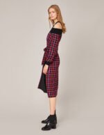 MARYLING V-NECK KNIT SPLICED CHECKED DRESS
