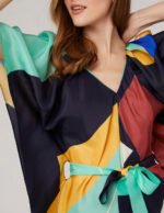 The big V-neck and the ruffled sleeves extend to the hem are atmospheric and full of temperament.